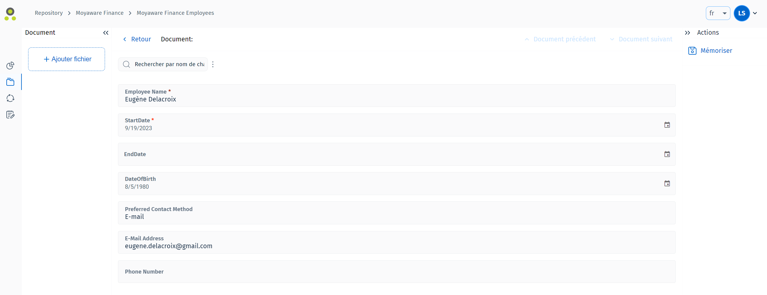 6.  Lorsque vous avez entré les données d'index appropriées et joint tous les fichiers appropriés au document, appuyez sur le bouton « Mémoriser » sur la gauche de l'écran pour terminer l'ajout du document.
