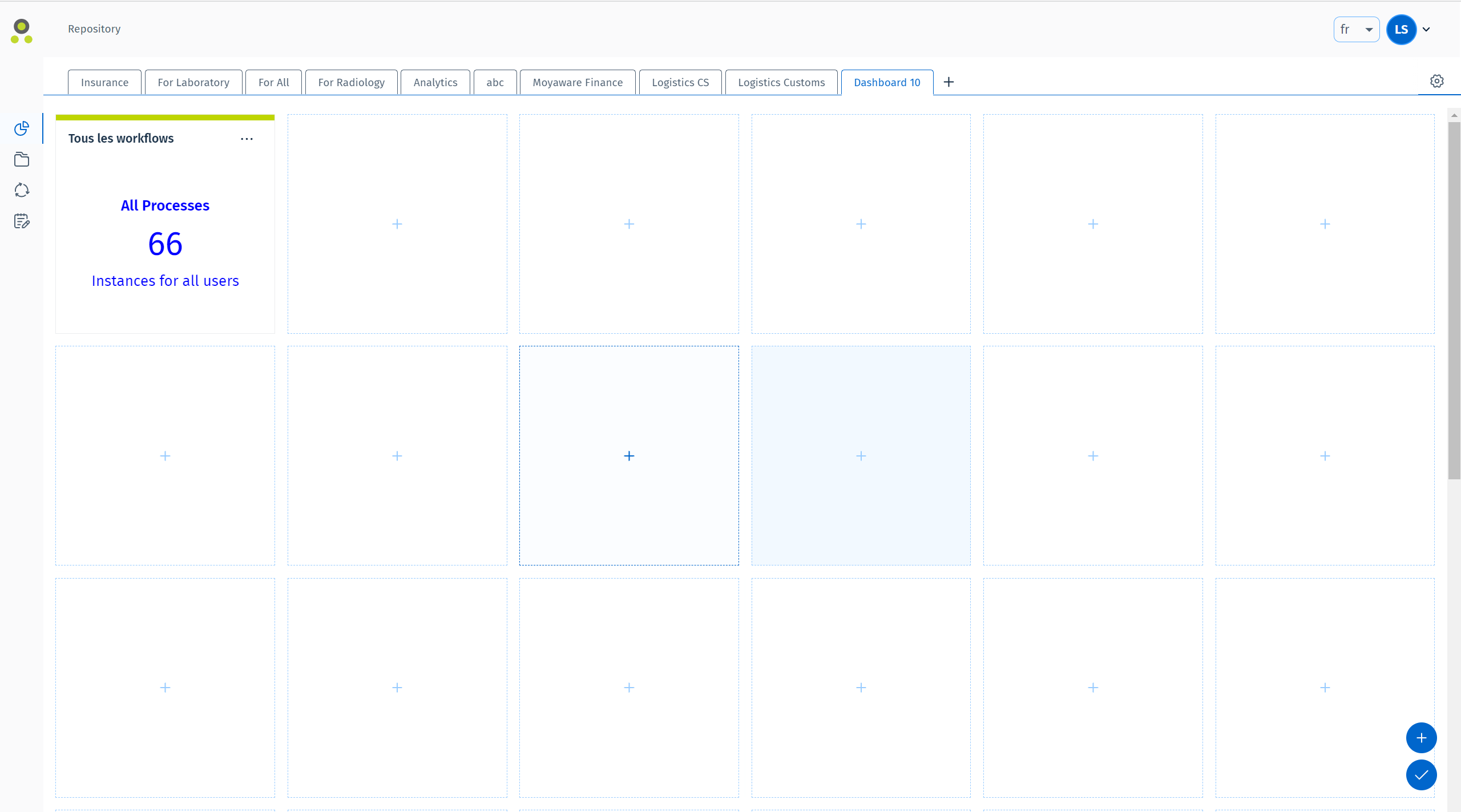 •Vous pouvez également créer différents tableaux de bord sur différents onglets à l'aide du bouton Gérer les tableaux de bord (