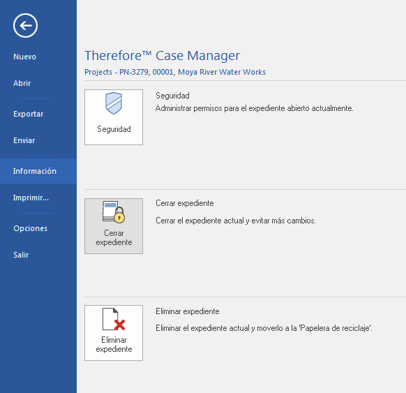 Es posible cerrar un expediente para impedir que los usuarios realicen más cambios en el expediente. Si es necesario, un administrador puede volver a abrir un expediente.