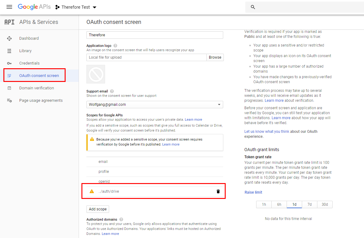 3.Introduzca las credenciales de usuario en la pantalla 'Autorización de OAuth' y seleccione '.../auth/drive'.