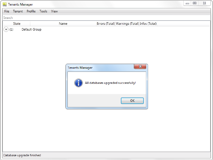 3.Haga clic en File otra vez y seleccione Upgrade all Databases (Actualizar todas las bases de datos). Se mostrará un mensaje de confirmación si la actualización se ha realizado correctamente.