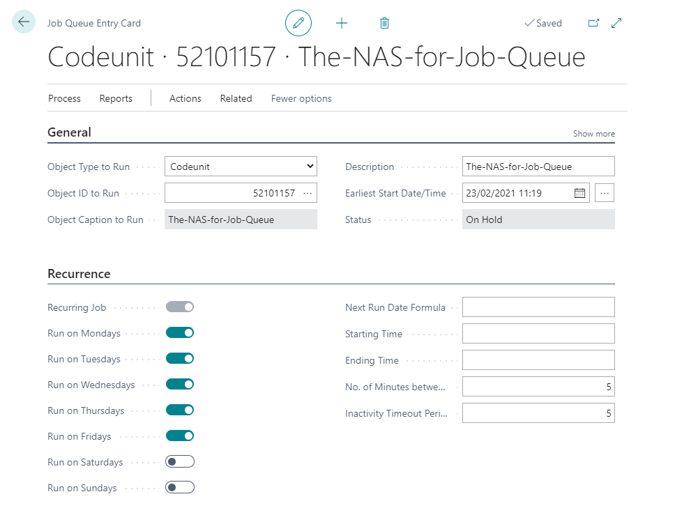 When everything is configured and a start date is set, the job queue needs to be activated: