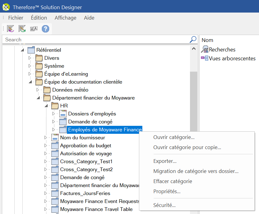 Cliquez avec le bouton droit de la souris sur une catégorie donnée pour ouvrir un autre menu contextuel.