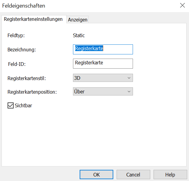 Diese Eigenschaften sind nur für Registerkartenfelder verfügbar.