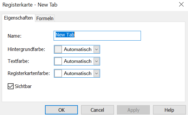 Einen aussagekräftigen Namen für die Registerkarte eingeben.