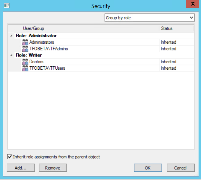 Sie können dann Zugriffsberechtigungen für den replizierten Benutzer einrichten, indem Sie mit der rechten Maustaste auf das Therefore™-Logo links oben im Fenster klicken und Sicherheit wählen. Als Nächstes können Sie hier ein Konto einrichten.