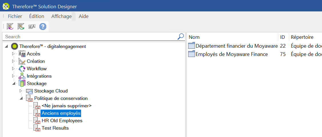 Pour les besoins de ce didacticiel, nous allons définir une politique de conservation destinée à gérer les documents RH des ex-salariés.  Dans le cas présent, ces documents doivent être supprimés dans les six mois qui suivent le départ des salariés.