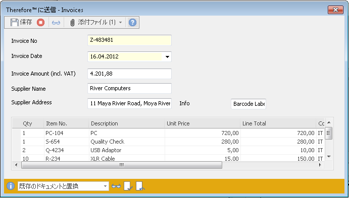 3.OKをクリックして設定を保存し、カテゴリーを保存します。同一の固有識別子でドキュメントを Therefore™ に保存すると、既存のドキュメントのデータを使って、その他のすべてのフィールドが入力されます。