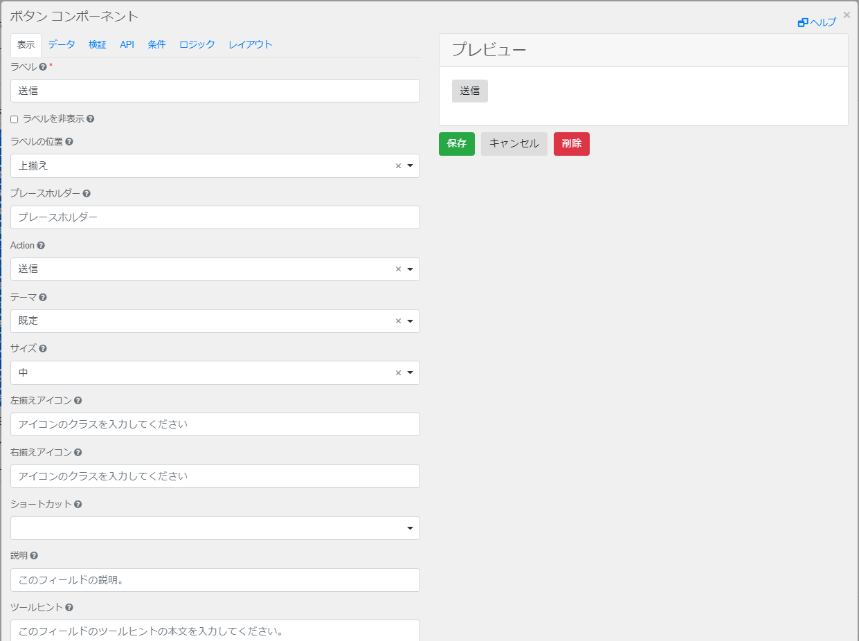 注:アクション(例:ラベルを保存)に基づいてボタンの種類を判別できるように、ラベルを変更することもできます。